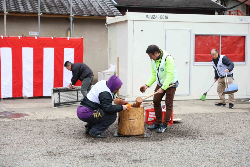 At the site where the mochi pounding had taken place,