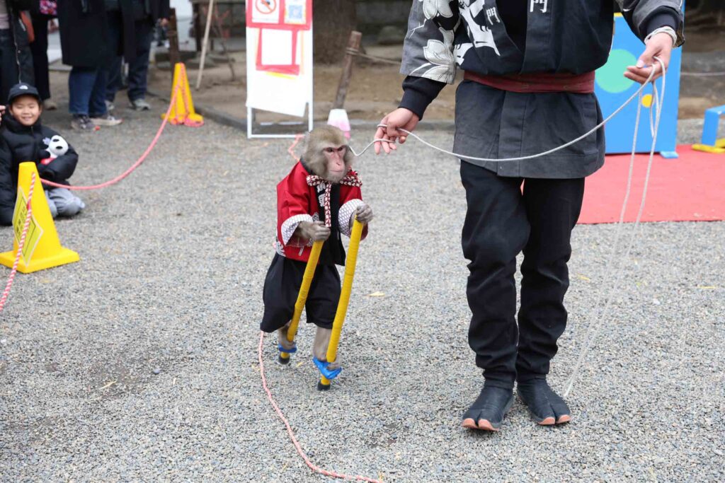 I noticed a monkey performance and a mochi-pounding event taking place near Asakusa Shrine.