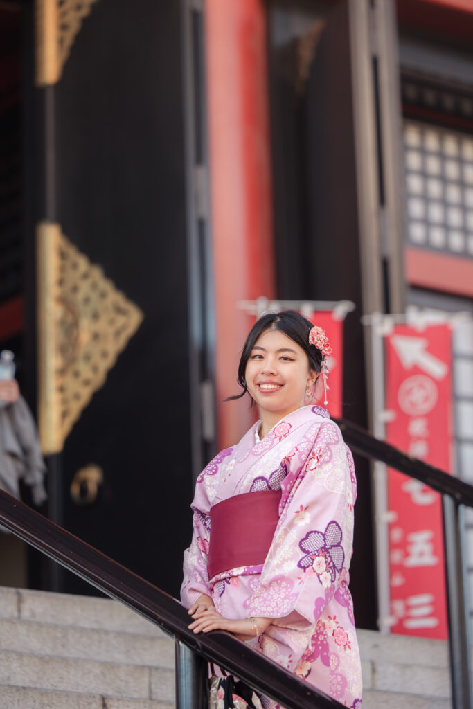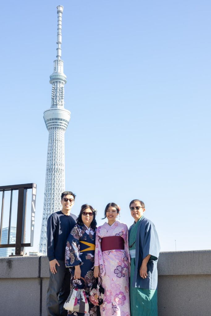 We took a variety of photos, including one with the Skytree in the background, one in front of Asakusa Shrine, and one using a Japanese umbrella to get a taste of Japanese culture.