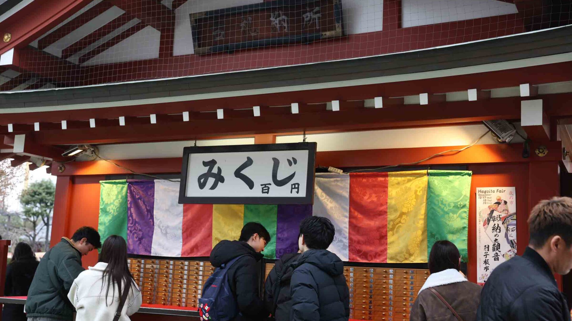 There are several places where you can draw omikuji at Sensoji Temple, but the easiest one to find is located immediately after passing through the Hozomon Gate.
