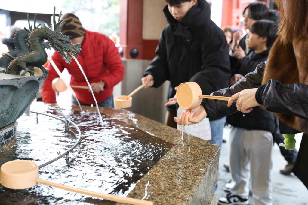 When visiting Sensoji Temple in Asakusa, one of the first places many people stop is the temizuya, the hand-washing area near the entrance.