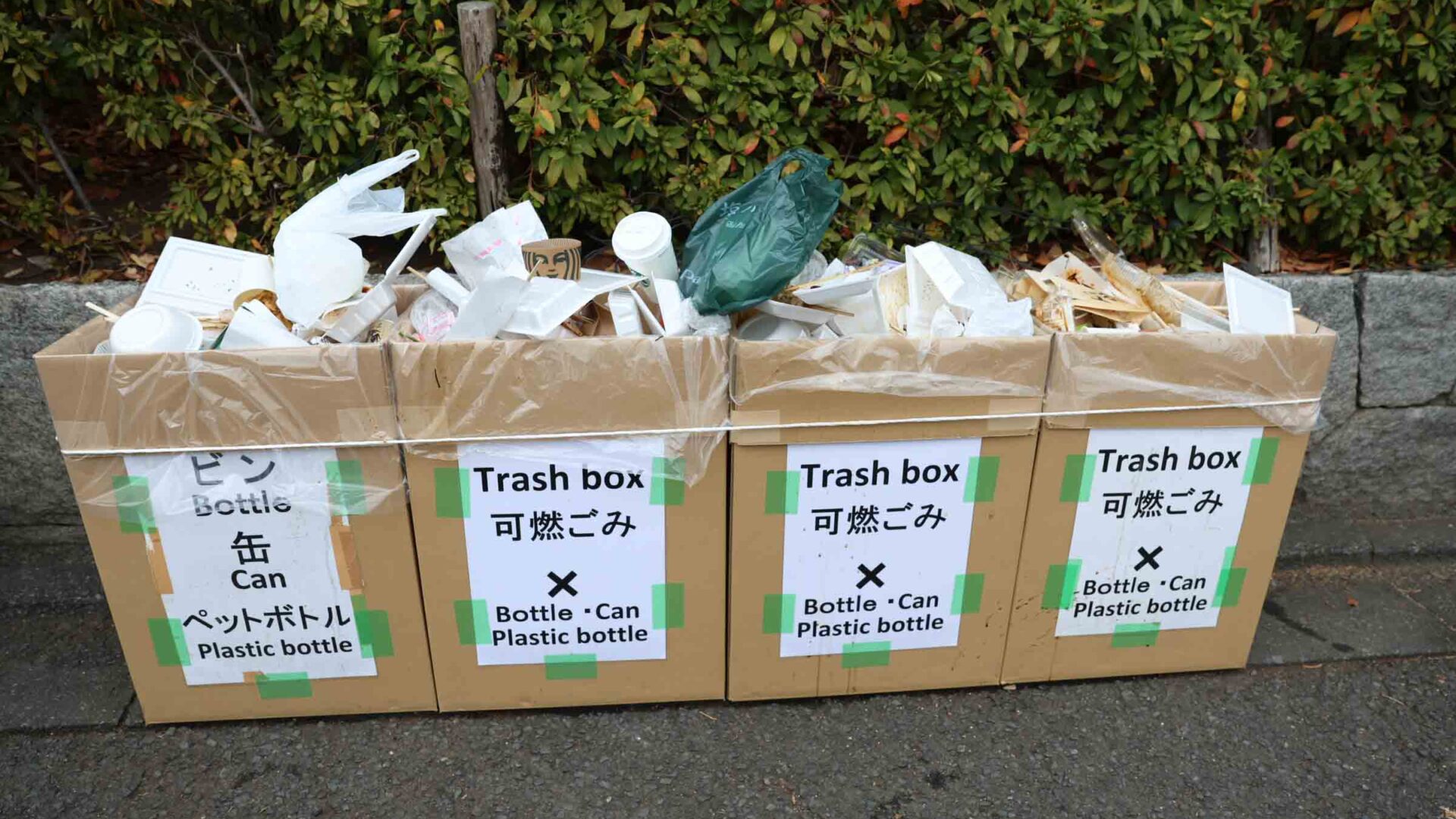 These bins were located on the street in front of Yakushido Hall.